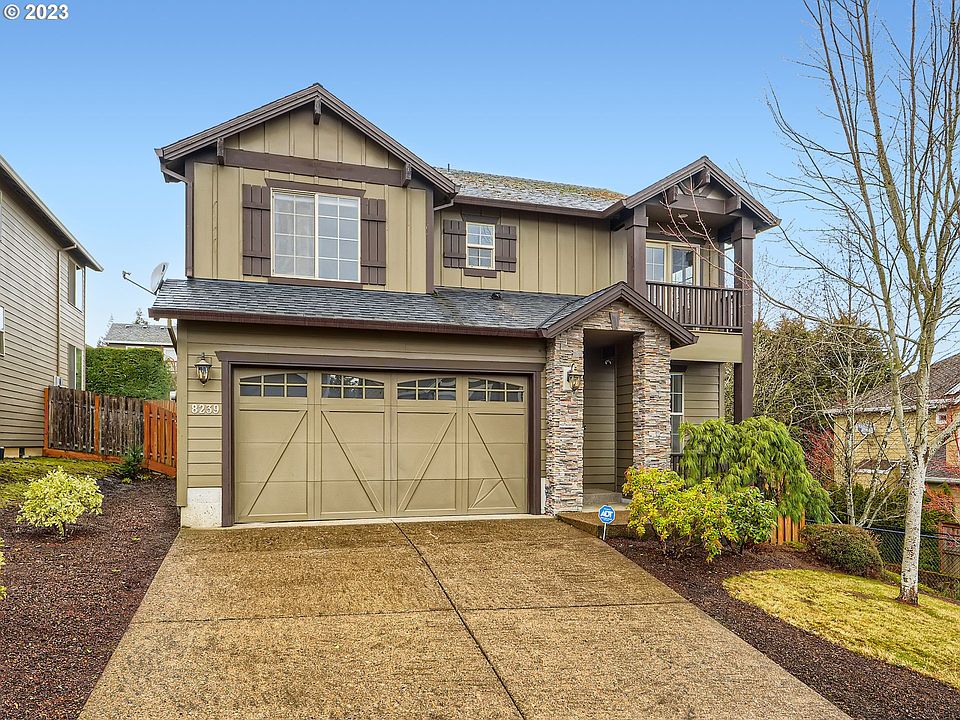 View of Mt. St. Helens and City from Balcony! Fantastic home for family and entertainment, plenty of room inside and in private back yard with new hot tub on IPE Brazilian Deck. Spacious Kitchen equipped with stainless steel appliances, Island and Pantry. Gas Fireplace and TV provide ambiance. Gorgeous, New Mohawk Carpeting and New Interior paint! Relax in Master Bath soaking tub. French Doors into Den on Main Floor. 6,306 SF Lot, no HOA fees. 4 minutes to Cooper Mountain Nature Park. Solar Panels reduce electric bill; new Hot Water Heater. 2019 exterior paint.