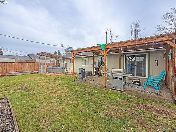 This charming 3-bedroom, 1-bathroom home offers comfort with a farm house style in a highly desirable location. As you step inside, you're greeted by a custom accent wall that adds a unique touch to the living space. The home features beautiful cultured countertops throughout, paired with a stunning stone fireplace, perfect for those cozy evenings.Step outside to the cozy backyard, which is fully fenced, providing a safe and private space for your furry friends to roam. Enjoy ultimate relaxation in the hot tub, or unwind on the patio with plenty of room for outdoor lounging. Whether you're hosting guests or seeking peaceful solitude, this home offers the perfect balance of comfort and convenience. Don't miss the opportunity to make this gem yours!