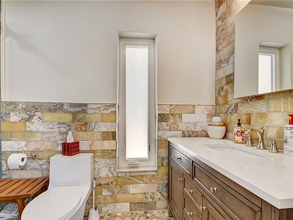 The backyard is the perfect place to relax and unwind. Enjoy a swim in the sparkling new salt water pool, soak in the hot tub, or simply relax on the Travertine paver deck. The professional landscaping will add to the beauty of your backyard oasis.