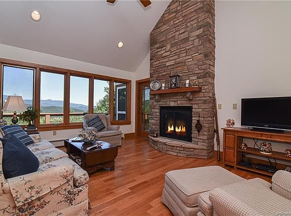 View lovers' paradise. This single owner home is in immaculate condition and offers the view of a lifetime. Breathtaking views can be enjoyed from the kitchen, breakfast nook, living room, master suite, upstairs loft or the full length back deck. Enjoy the cool mountain breeze from the screened porch off the master suite which is on the main level. Everything you need is on the main level; the garage, the laundry room, living space, master suite, great room, formal dining room and guest bedroom. As you approach the home you'll notice the magnificent 8 foot tall solid wood door and just inside the grand foyer with soaring 20+ foot high ceiling. The beautiful kitchen offers ample storage, granite countertops and stainless appliances including a double oven. Main level flooring is red oak w/ walnut inlay and carpeting in the bedrooms. 2 bedrooms on the main level and 2 + an office on the upper level. 2100 sf of unfinished basement ready to create additional livingspace. New Heat Pump.