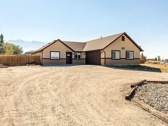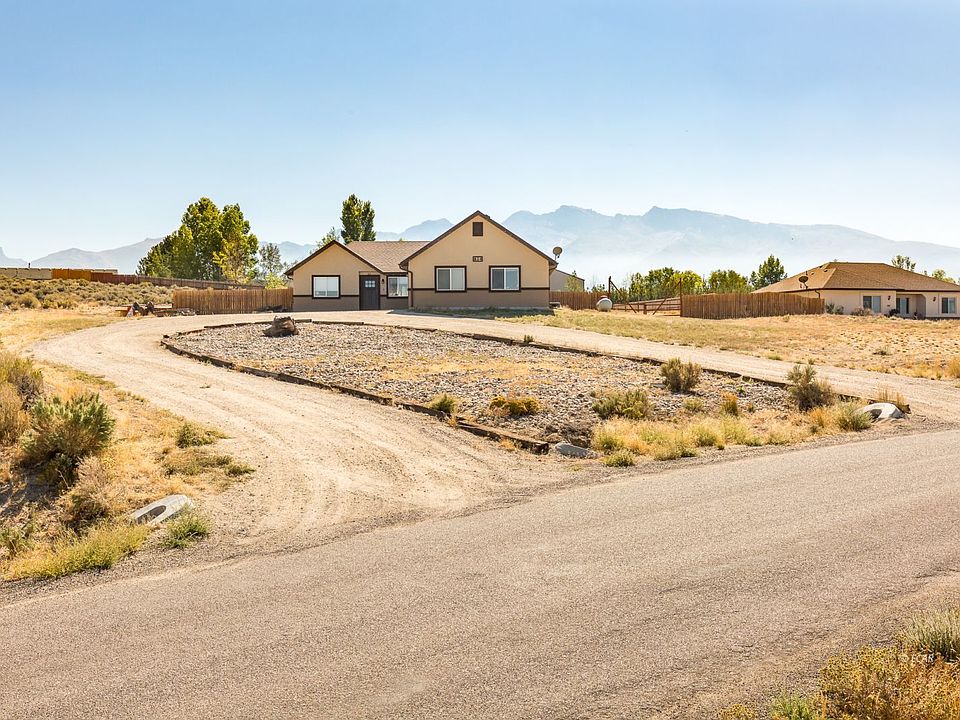 Beautifully maintained Beck built home! This home offers 1,450SF, 3 bedrooms and 2 bathrooms all on 1.64 acres. Enter into the vaulted open concept living, dining, and kitchen areas. Kitchen cabinets provide tons of storage along with the large island and pantry. Great space for entertaining or relaxing with family at the end of the day! Continue to unwind in the master bedroom with updated flooring an amazing view of the Ruby Mountains. Master bathroom features a huge vanity with ample counter space and a 6ft tile surrounded tub/shower combo. This split bedroom floorpan also includes spacious spare bedrooms with updated flooring. Step outside through the sliding door to the fully fenced backyard, built in fire pit and large back patio. Enjoy the view you'll see from there when you schedule your in person showing today!