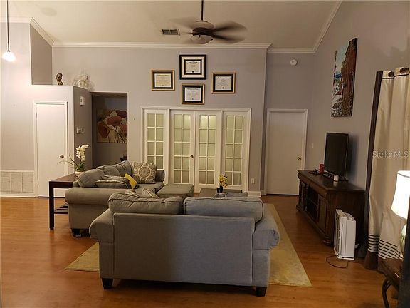 - Interior Features: Ceiling Fans(s), Eating Space In Kitchen, High Ceiling(s), Open Floorplan, Walk-In Closet(s), Crown Molding, Living Room/Dining Room Combo