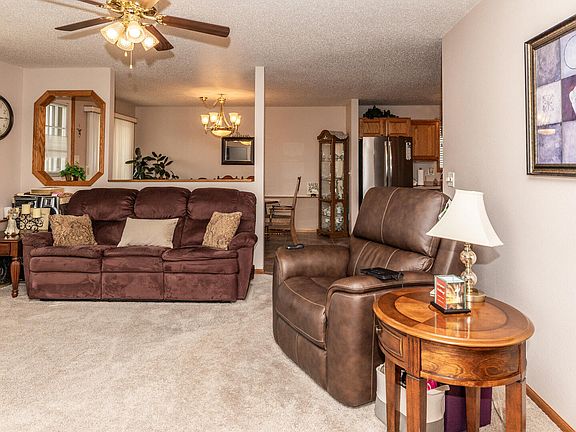 Looking for easy living in a 2 bedroom, 2 bath MAIN FLOOR condo located in a desirable SE Bismarck area?! This home has been very well maintained and offers a south facing living and dining area. There is a covered patio off the dining area to enjoy your favorite beverage and offers plenty of space for grilling. The kitchen has lots of oak cabinets with pull-outs and stainless appliances. Just off the kitchen area is a laundry room with washer/dryer included and a convenient drop-down ironing board. The primary bedroom is spacious and has a walk-in closet plus an ensuite bath. The additional bedroom and full bath complete the home. The double attached garage is just down the hall. This is a great, move-in ready condo! Shingles have been replaced in the last few years.
