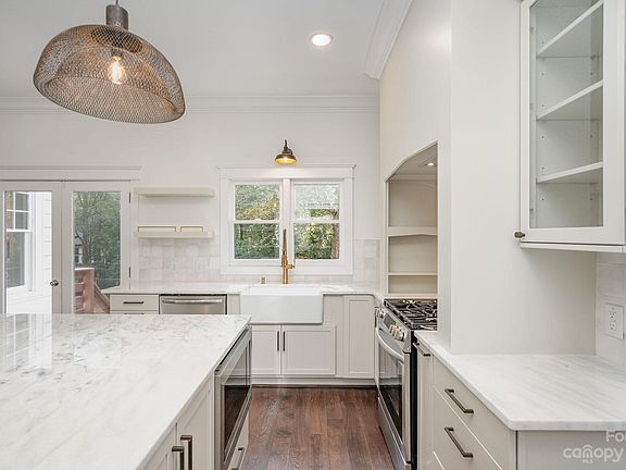 Elegant 4 bedroom,2.5 bath, in the heart of historic Dilworth!INTERIOR HAS BEEN RENOVATED & RECONFIGURED-new hardwoods, marble entryway & tile floors;all new interior paint, trim,electrical,plumbing,hardware & lighting fixtures throughout;4th bd can be used as flex rm or formal dining rm;9.5 ft ceilings throughout most of home;new kitchen features custom cabinets,range hood,tile backsplash,farm sink,pot filler, marble countertops,generous island & Electrolux appliances;living room highlights include custom cabinets w/ built-ins & new cast stone fireplace;custom flex zone area w/built-in work space & wet bar w/beverage fridge;all new bathrooms ft. custom tile & marble countertops;new front door,new exterior paint & front exterior re-fresh;recently re-landscaped;recently updated structural foundation & floor; spacious private backyard & private driveway.Walk to restaurants,shopping & parks in Dilworth & South End within minutes!Don’t miss this rare opportunity in such a coveted location!