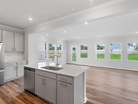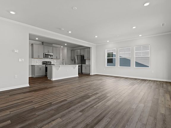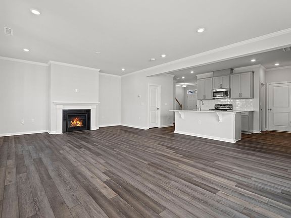 Inside Elegance with a Large Great room with a fireplace, dining room with crown molding, and a screened in back deck with views of the spacious backyard. Featuring a "chef's dream" gourmet kitchen, outfitted with all the latest stainless steel appliances, gas range, quartz counters, 42 in grey cabinets that opens to the living space. Perfect for entertaining!