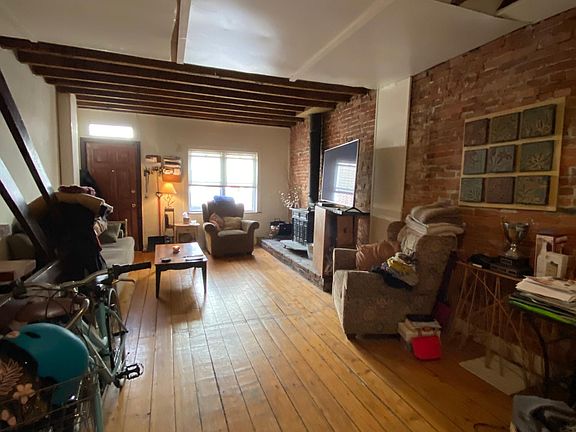 Nice-sized rear yardLarge unfinished basementFull eat-in kitchenNice-sized bedroomsGood counter top spaceOriginal wood burning fireplaceExposed wood beams