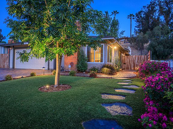 Welcome to this lovely 3 bedroom, 2 bathroom, 1,664 sqft home in a charming neighborhood, on the west end of Simi Valley. Double door entry leads to a welcoming leaving room with vaulted ceilings, recessed lighting, built in surround sound and a cozy gas fireplace. Adjacent dining area has hardwood floors, and slider to the back yard. Remodeled kitchen has modern white cabinets, stainless steel appliances, granite counters, and a breakfast bar. The kitchen opens to a light and bright family room with vaulted ceilings, skylight, built in wine fridge, and a brick fireplace. Huge master bedroom with vaulted ceiling, skylight, walk in closet and a slider to a private center courtyard. Master bath has dual sinks and walk in shower. 2 nice sized secondary bedrooms have hardwood floors. Hall bath with smooth surface counters, and tub/shower combo. The private backyard is an entertainers dream with a beautiful covered patio that has recessed lighting and ceiling fans, a gas fire pit, and a huge grassy area just perfect for summer play. The community offers a pool and spa. Renter is responsible for utilities. No smoking. Gardener included.