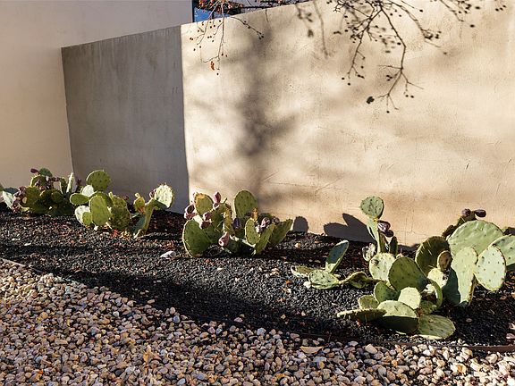 Casa Dacha is a free-standing Adobe pueblo bungalow located in an historic area in town born prior to the 1940’s. It is the original structure on this property which has now been incorporated into intimate enclave with 3 other condos. Newly designed and renovated with a tasteful eye, it continues to honor the traditional architecture & Santa Fe charm. Enter through a generous walled and locking gated flagstone courtyard with an entry to the living room and dining area featuring 12’ handsome coved vigas ceiling and cozy gas lite fireplace with plaster walls throughout. The newly designed kitchen has a chic modern efficient theme, outfitted with brushed brass hardware and a back door accessing the outdoor perimeters. The split floor plan offers more privacy with two generous bedrooms complete with one bespoke bathroom featuring heated floors and hand painted Moroccan style concrete tiles in a large walk-in shower, paired with brushed brass hardware and plumbing fixtures. The bathroom is also accented with a heavy duel sided mirrored sliding barn style doors for an elegant closure. The spacious courtyard is perfect for dining al fresco or lounging for sunset wine tasting. This charming bungalow is an opportunity to acquire a part of old historic Santa Fe situated conveniently in town, close to the artsy Railyard District, Fine Art Galleries, restaurants and the downtown Plaza. Open House this Sun 1-4, Dec 11!!
