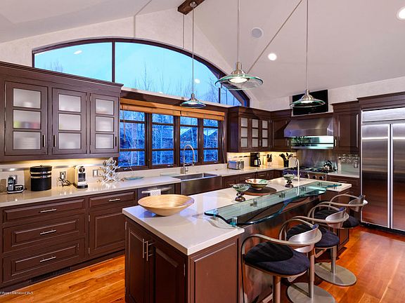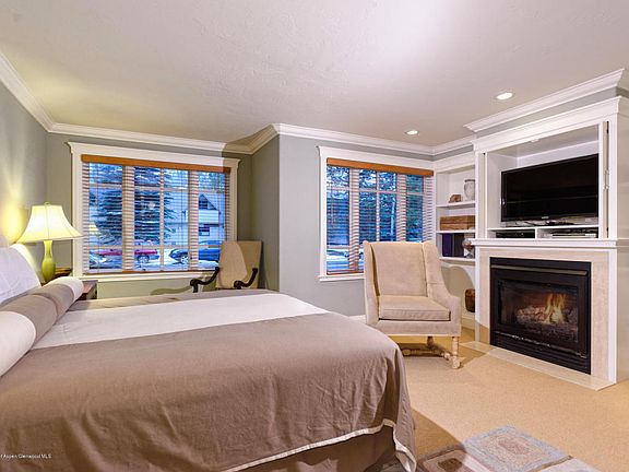 Rare south facing luxurious townhome located in the central core of Aspen. Enjoy Aspen Mountain views and easy downtown conveniences. This chic and and stylish home features an open and contemporary floor plan with vaulted ceiling, fireplace, hardwood floors, gourmet kitchen with breakfast bar, dining area and dumb waiter.Two spacious master suites both with fireplaces, jetted tubs and steam showers.The garden level includes 2/3 additional bedrooms ( one with private entrance), laundry room and 2 car garage plus 2 additional off-street parking spaces. A/C and radiant heat.