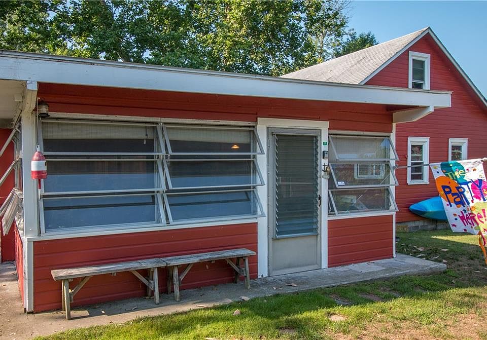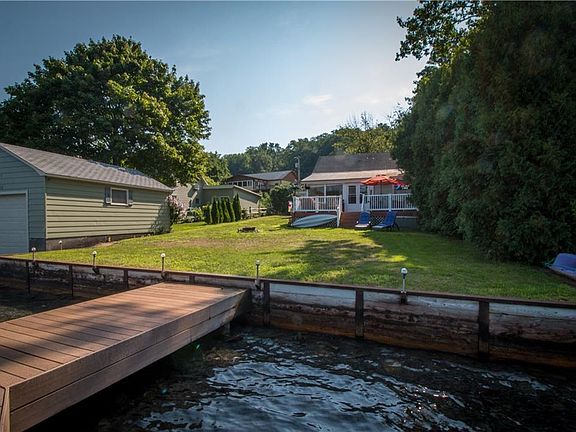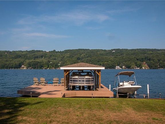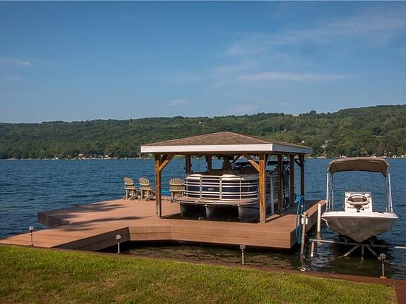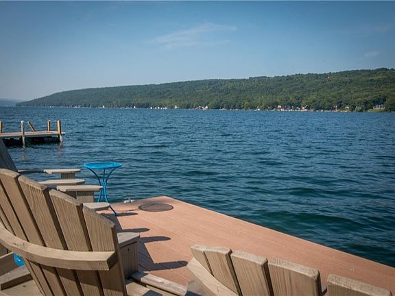 The perfect mix for Keuka Lake - FLAT LEVEL lakefront with with permanent dock, covered and open boat hoist and a spacious deck for entertaining or just relaxing. The lawn adds fun space for campfires and yard games. The spacious oversized family room (432 sq ft )complete with additional fridge,is great for board games or entertaining. With 2 plus bedrooms there is plentry of room for overnight guests. A partially fenced yard adds privacy. You won't want to miss this great offering. Great deli/market in walking distance for all your Lake needs. May come furnished...