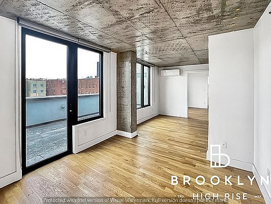 Welcome to 824 East New York Ave A spectacular development featuring a State of the Art Gym, Furnished lounge, Furnished Roof deck and more! This Penthouse Corner Two Bedroom features an Enormous Private Rooftop and open Concept Living Space! High vaulted ceilings with concrete finish, Large windows giving off natural light. Kitchen with Brand Name Appliances, dishwasher and custom cabinets with granite countertops. Ensuite washer/dryer, built in Heat/AC unit and virtual doorman. Building offers a Bike room and onsite Parking. Close to Transportation, restaurants, bars, cafes, and coffee shops. Call, Text, or Email for a showing tailored to your schedule. BROKERS FEE Smoking allowed:No