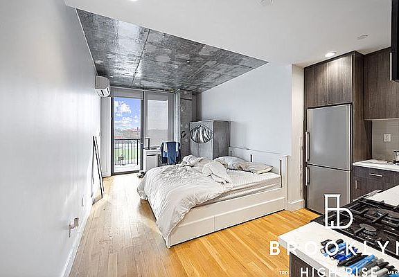 A spectacular development featuring a State of the Art Gym, Furnished lounge, Furnished Roof deck, and more! This One Bedroom features a large balcony, High vaulted ceilings with a concrete finish, Large windows giving off natural light. An open kitchen with Brand Name Appliances, dishwasher, and custom cabinets with granite countertops. Ensuite washer/dryer, built-in Heat/AC unit, and virtual doorman. Large windows giving off tons of natural light. Coat closets! No Fee! Check our video walk-thru of the building and amenities. Close to Transportation, restaurants, bars, cafes, and coffee shops. Call, Text, or Email for a showing tailored to your schedule.