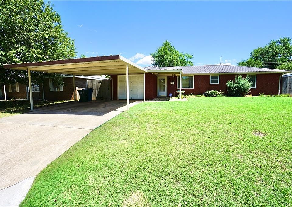 This is an immaculate brick 3 bed 1 bath home in Midwest City. This home features fully restored hardwood floors, newer energy efficient windows, ceiling fans thru out & an enclosed privacy fence in the backyard. The HVAC system is less than 5 years old. The kitchen has been remodeled with granite counter tops, gas range & ceramic tile. The bathroom has been remodeled as well. Other updates & extras include: an 8 person garage floor storm shelter, replaced sewer lines, metal roof & a large storage building in the backyard. The brick exterior is complimented by vinyl siding. There is also a screened in porch!