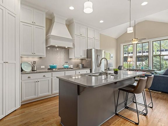- Kitchen Features: Breakfast Bar, Eat-in Kitchen, View to Family Room, Stone Counters, Kitchen Island, Pantry Walk-In, Solid Surface Counters, Keeping Room, Cabinets White