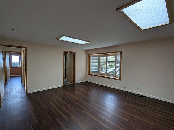 Custom built home with View of Trinidad Head, large south facing deck, kitchen and living room face south with nice windows, custom kitchen with gas stove, refrigerator, custom built cabinets with wine rack, laminate flooring throughout, skylights, double car garage with washer/dryer, forced air heating, decorative pellet stove, yard maintenance negotiable, will consider one pet. Minimum 6 month lease. Broker ID# 02247403 Minimum 6 month lease, all utilities are tenant's responsibility, No Smoking.