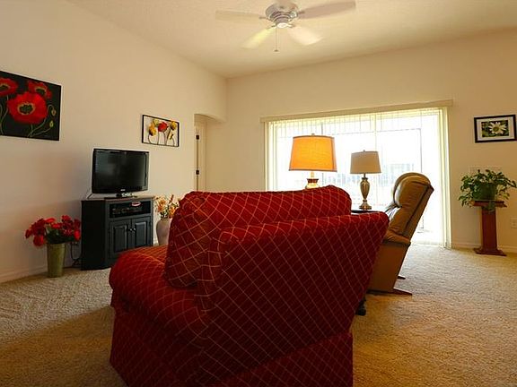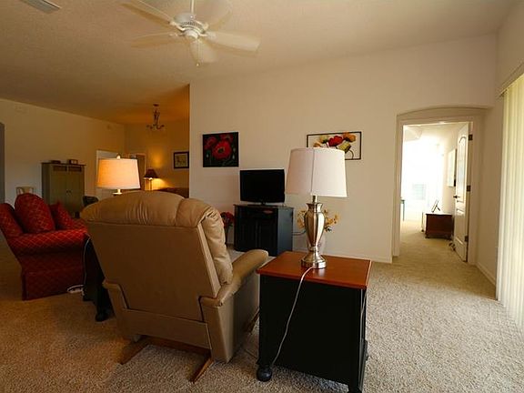 NO HOMES BEHIND! This lovely CEDAR Designer home is located just south of 466A in the newer Village of CHARLOTTE. You'll love this OPEN PLAN with 3 full bedrooms, VOLUME CEILINGS and an OVERSIZED HOMESITE with ROOM FOR A POOL! This is a great home for entertaining with a SPACIOUS KITCHEN which opens to the roomy Living Room/Dining Room combo. Sliders from the Living Room lead you to an EXPANDED Covered and Screened Lanai on 3 sides. Enjoy your morning coffee on the East facing lanai! The Kitchen features beautiful Maple Cabinets, STAINLESS Steel Appliances, Side-by-side Refrigerator, Double SS Sink, Beveled Countertops, a large BREAKFAST BAR and an inviting Breakfast Nook. The Inside Laundry is offset, so you don't have to walk-through as you come and go to the garage. Need more garage space? Look no more - this one has been STRETCHED 4' with an 18' Garage Door! The Master Suite has a TRAY Ceiling, Walk-in Closet and the Bath has Dual Sinks plus a ROMAN SHOWER. There are 2 Guest Bedrooms with a Full Bath which includes a Tub/Shower combo. This great buy also features POURED CONCRETE CONSTRUCTION, Architectural Shingles and Knockdown Ceilings. And don't forget....NO KISSIN' LANAIS! Tax line shown reflects actual property taxes, CDD line combines annual bond payment $1,627.09 and annual maintenance assessment $721.06. Bond balance $18,478.68.