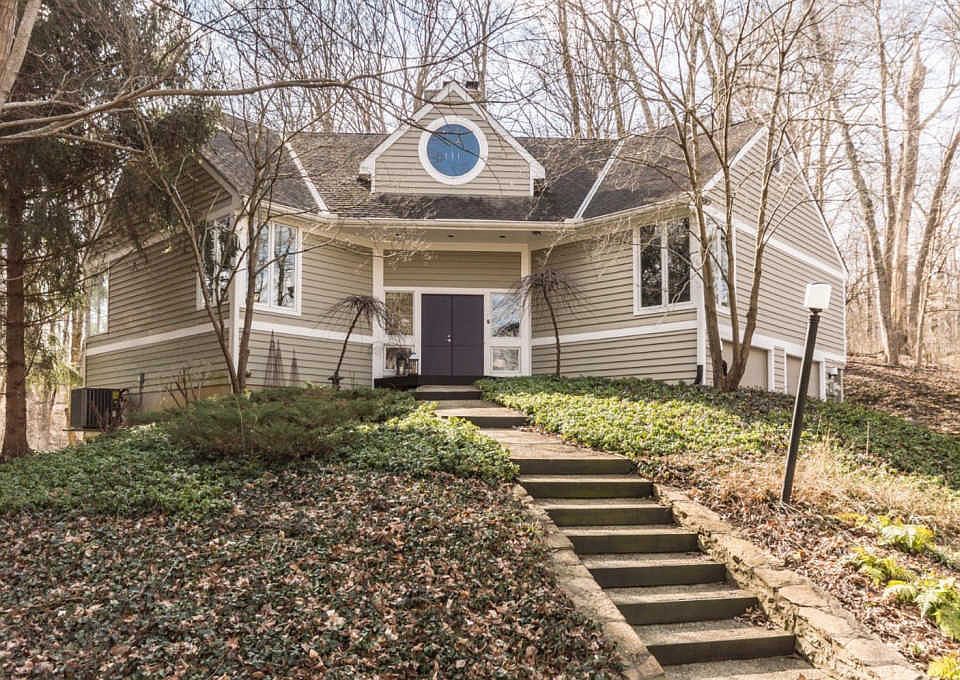 One of a kind home tucked away on a PRIVATE wooded- 1 acre lot. Contemporary architecture at its finest! Vaulted ceilings, windows galore. Views from every room! 1st floor master and laundry. 15 mins from downtown.