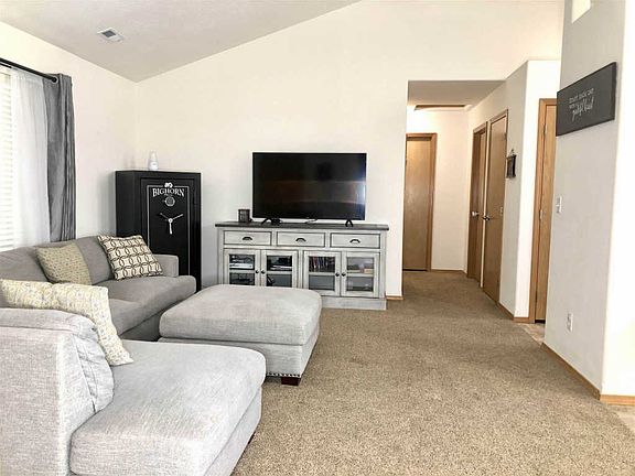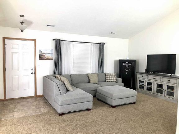 Looking for zero step entry home? Well maintained 3 bedroom 2 bath main floor living with a finished 4th room that can be used as an office/den/rec room. Master bedroom with a spacious walk-in closet. Enjoy the front covered porch, maintenance free vinyl siding, fully landscaped yard, sprinkler system, concrete edging and back patio. Central AC and fenced backyard. Close to walking trails and playground. Washer and dryer stay.