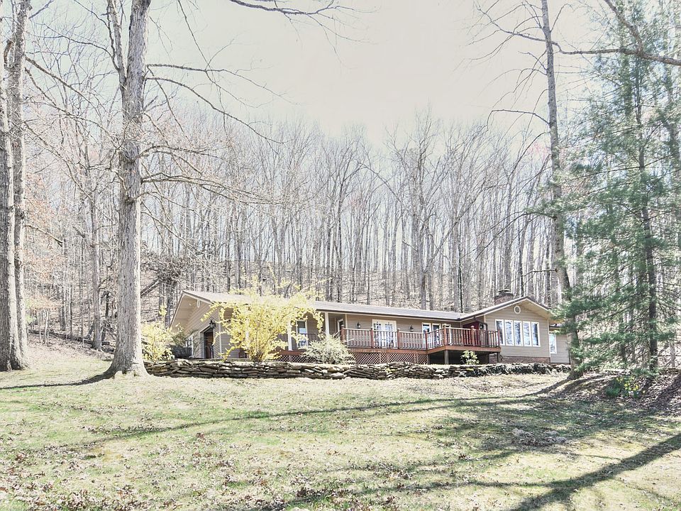 This spacious ranch located in the city limits offers great location and seclusion. With beautiful hardwood flooring, solid wood paneling, cherry kitchen cabinets and plenty windows throughout for natural light, it's ready for immediate occupancy. Consisting of 3 lots with beautiful established trees, your only .5 of a mile from I-64. For over 30 years this has been home to the same owners. This home offers 2 very large living/family rooms, attached 1 car garage, eat in kitchen w/bar, large utility room, newer metal roof, split bedroom concept from the primary bedroom and so much more!