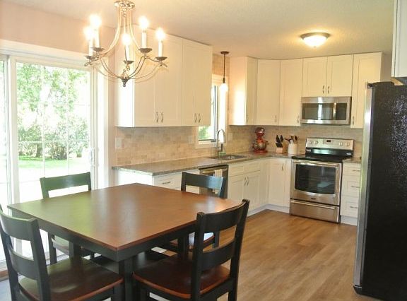 Completely renovated 3 bedroom rambler in a quiet neighborhood across from park. 3 bedrooms on main floor, gorgeous kitchen, sliding glass door off dining room to huge backyard with patio & storage shed. Lower level family room. Steel siding. See supplements for list of improvements.