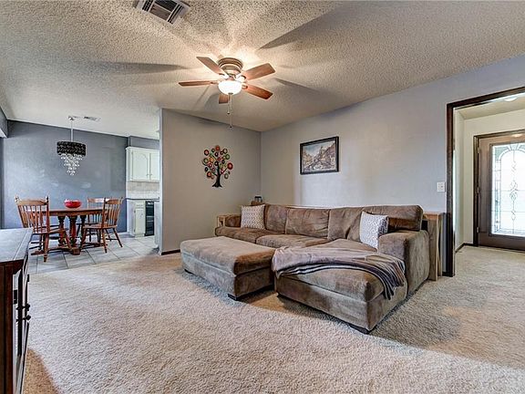 What a charming home in the perfect location. Close to everything you need from shopping to restaurants nearby. You don't want to miss your chance to make this home yours! With two large living spaces the choice is yours between a formal living or a play room. The kitchen has been recently updated by previous owners including updated paint on cabinets, 3cm bullnose granite countertops, newer cabinet hardware, travertine backsplash, and ceramic tile, light fixtures, and faucet. The whole home has new carpet throughout. The master bedroom has ample room and great natural light and flows into the full Master bath that has been recently renovated. Large in ground storm shelter in the garage. This one has it all, don't miss your chance to make it yours!