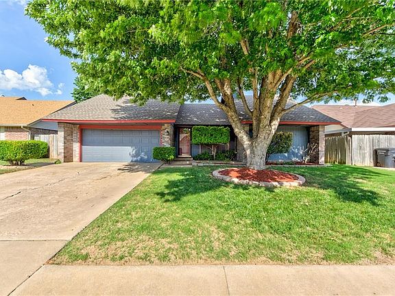 Looking for a move in ready home on the west side of Moore? Then look no further! This home has been well maintained with updates throughout. From the outside, you are greeted by a large tree providing ample shade over and a well-manicured lawn. Upon entering, you'll find the living room covered with pristine wood laminate floors. Continuing, you encounter the dining room and kitchen with updated tile floors and a scenic view of the backyard. The kitchen features granite countertops, stainless steel dishwasher, a newer range and updated cabinets throughout. Outback is an outdoor living area with a ceiling fan perfect for cooling off during these hot, Oklahoma evenings. Off the living room is the main hall with the three bedrooms, an updated guest bath, and storage. The master features two walk-in closets and a gorgeous en-suite bathroom. The garage features a large in-ground storm shelter to keep you safe. A beautiful park is nestled around the corner, ideal for relaxing on weekends.