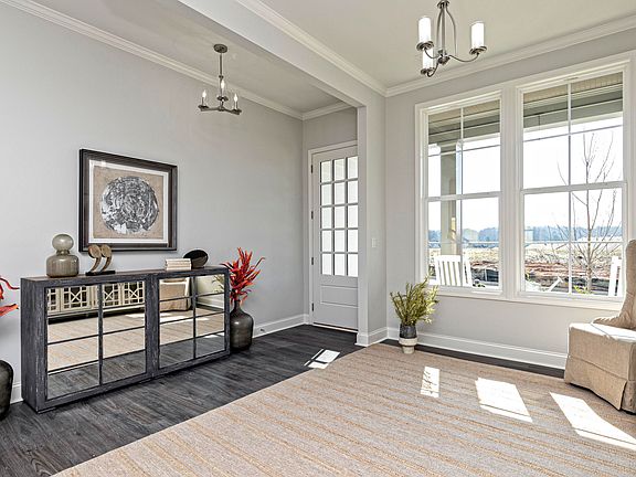 Just a short walk to Edgewater's incredible lakefront amenities, The Davis on Homesite 289 offers everything you're looking for in a home and Holly Springs neighborhood. Step inside and you will find an open foyer with 10' ceilings and a flex space that can be used as a home office, sitting room, or whatever suits your needs. The adjacent dining room leads into an open concept family room, breakfast area and gourmet kitchen with lots of natural light and direct access to a covered porch- a wonderful space to enjoy a coffee in the morning or nightcap in the evening. The second floor doesn't disappoint with a spacious primary bedroom which includes a raised tray ceiling, an en-suite bath, and double walk-in closets. Two additional bedrooms with a shared bath, plus a convenient laundry room on the same level. Some of the SMart Selected options in this home include a shiplap fireplace in family room, upgraded kitchen appliances, Kichler lighting, and Kohler fixtures. Photos and virtual tour are of a similar completed model. This home will be completed this Fall so you can move in before the holidays! Schedule a tour today.