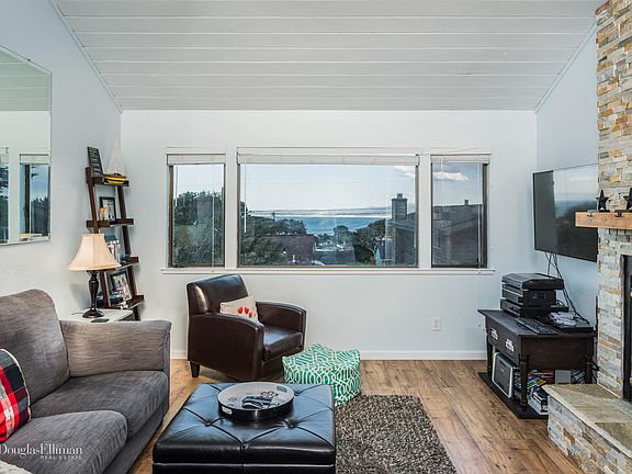 Beautiful Bay views from this reverse floor plan with 2 bedrooms and a full bath downstairs along with sliding glass doors that lead to a private updated patio with pavers and a peak of the ocean. Upstairs you will find an open floor plan to the updated kitchen, dining living room combo with fireplace and beautiful bay views all the way to Santa Cruz along with a deck great for grilling and watching the sun set. A large master bedroom with full bathroom and another 1/2 bathroom for guests. This home was updated in 2015 with new floors, kitchen, fresh paint and drought tolerant landscaping. Beach, Shopping and biking trail within walking distance.
