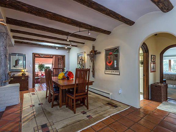 This northeastern city home offers fabulous views of the Sangre de Cristo withmountains to the east and beautiful sunset views to the west. It features a 3 bedroom, 2 bath main house with a 1 bedroom, 1 bath casita. Built in 1973and extensively remodeled in 1990, it offers an enclosed courtyard entry area, updated kitchen, tile floors, two fireplaces, coved ceilings with vigas and beams. The large driveway is finished with brick paversaround a center island. The outdoor living space includes a patio off theeastern bedroom (currently being used as an office), and an enclosed dog run on the west side of the home. The casita offers its own private area. Enjoy the Jemez mountains and sunset views off the patio area. The casita is great for guests or can be rented out.