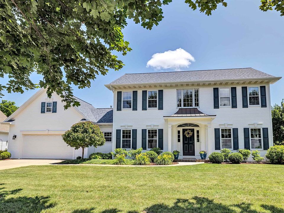 This exceptional one owner colonial home is located in De Pere close to schools, parks & shopping. It offers a great living space with formal living & dining rooms. Family room with wood-burning fireplace and gas line ready for hook up, spacious kitchen/dinette area with white cabinets, island, double ovens, office nook and dinette with doors leading out to large deck to relax and see the beautiful view along with the amazing landscaped yard! Upper level has 3 bedrooms including the master suite with walk in closet and full bath w/double vanity and tiled shower. 2 stall attached garage, lower level with egress window and ready for your own design. Newer roof, water heater, deck, furnace and A/C and set up for surround sound. All offers to be in by Sunday 7/17/22 6pm.