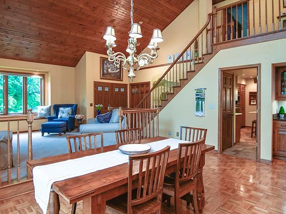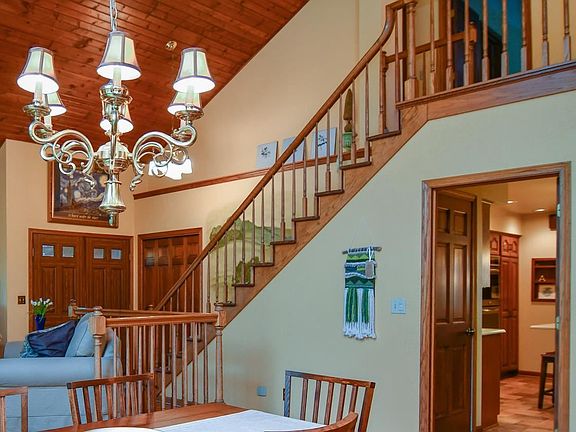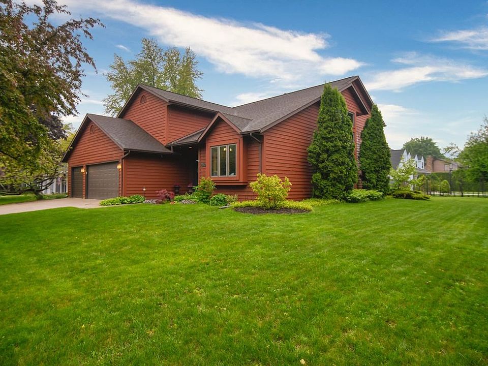 Granite countertops, copper wetbar sink, stainless appliances, huge newer windows, fireplace, deck, very private yard designed by a master gardener, beautiful lighting fixtures in every room. Tons of closet space, skylights, first floor laundry, attached 3 car garage. First Floor bedroom or office, huge master suite----giant closet, vanity area, feels like you are at a spa with a walk in shower and beautiful separate tub! Lower level features finished rec room with an additional bathroom, shelving and storage space and a workshop area! 16 ft high ceilings on main floor. So many beautiful upgrades and amenities!