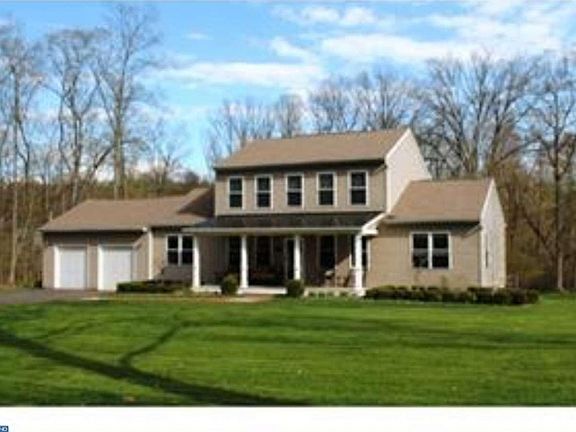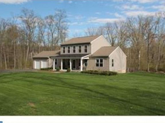 Welcome to this custom Colonial situated on 1.93 acres in Nockamixon Township and located in Blue Ribbon School District of Palisades. Upon entrance you are greeted with an open floor plan, pecan maple wide plank hardwood flooring on the main level with 9'ceilings. Living room showcases a custom built entertainment center along with a gas fireplace. Adjacent to the living room is a private office and half bath with tile flooring and granite. The gourmet kitchen offers hickory 42 cabinets, granite counters with a granite sink, center island, double ovens and stainless steel appliances. The main bedroom is located on the first floor and is generous in size with double closets, luxurious bath with window seat, tile flooring, granite counters and shower with seamless glass. The upper level offers three bedrooms, one of the bedrooms offers a sitting area. A full hall bath completes the upper level. This updated home offers a brand new front porch with trek decking, beautiful columns, metal roof, brick and blue stone walkway with professional landscaping beds. Off the living room, walk through the glass sliding doors out onto your brand new trek deck with black maintenance free railings, an over-sized blue stone patio, a fire pit, professional landscaping beds, vegetable garden and fenced in back yard. The lower level offers framed basement waiting for the finished touches, bilco doors and 9' ceilings. A magnificent setting and back yard backs up to game land. An easy commute to New Jersey, New York and I-78. Enjoy the Delaware River, the canal, local parks, fishing, hiking and climbing.