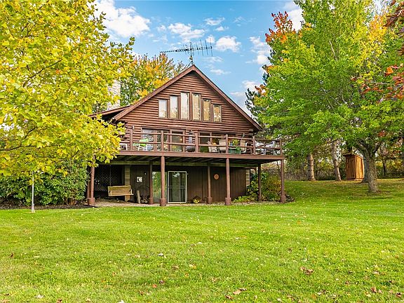 Just a 20 minute drive from downtown Canandaigua you will find this secluded home with amazing views! This well maintained log sided (can be removed) house sits on 10 private acres. Step inside and be greeted by the cathedral ceiling highlighted with large log beams in the great room. Updated kitchen with stainless steel appliances. Two bedrooms and one full bathroom complete the 1st floor. From there you can step outside onto the 800+ sq. ft. wrap-around deck and enjoy views of Bare Hill & S. Bristol! Upstairs loft space overlooks the great room and leads into the primary bedroom suite with its own bathroom, walk-in closet & balcony. Basement provides an additional 425 sq. ft. (approx.) of finished living space with a full bathroom and walk-out sliding glass door. There is plenty of storage in the basement, three car garage, 15'x11' shed plus a whimsical gardening shed. This house has it all with access to Canandaigua Lake only minutes away in Vine Valley offering visitors a Community House, General Store and public beach & boat launch. Make this your next home or Airbnb investment! Delayed showings, Wednesday 3/29/23 @ Noon and Delayed Negotiations, Tuesday 4/4/23 @ 6pm.
