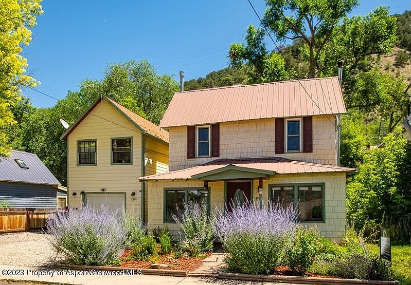 Possibilities abound in this centrally located Glenwood Springs home. Don't miss the opportunity to live just a few blocks from downtown in a friendly and historic neighborhood. The 2-bedroom home has beautiful walnut flooring throughout, a large heated and insulated front porch, and plenty of charm inside and out. The nicely finished 1-bedroom ADU above the garage offers additional income, a fenced back yard, and its own laundry room. An oversized, heated, and insulated 1-car garage gives you room for all your toys, while the finished bonus room in the back of the garage could be attached to the ADU as a second bedroom or used as a separate office or studio for the main home.