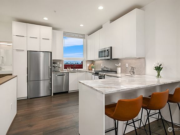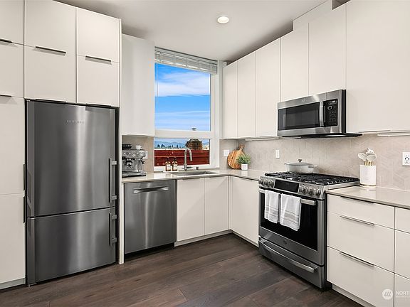 Embrace quintessential Seattle living w/ this stunning 2020-built modern townhome! Highlights include 3BRs, attached garage + rooftop deck w/ expansive views of Cascades, DT + Lake Union. A light-filled main level features open-concept living/dining + floor to ceiling windows. The 3rd level is devoted to a spacious private primary suite, complete w/ walk-in closet + spa-like attached bath w/ heated floors. Nestled on a quiet Woodland Park block, you’re just mins from Fremont, Wallingford + Ballard plus endless cafes, restaurants + bars nearby. Commuting is a breeze w/ quick access to 99 + nearby bus lines to DT/SLU. BONUS: Rooftop furniture by Article, firepit + grill ($5000+ value) + marble kitchen island by CB2 ($2500 value) negotiable!