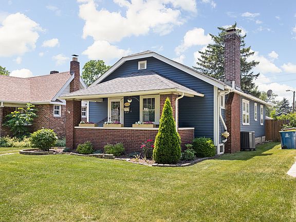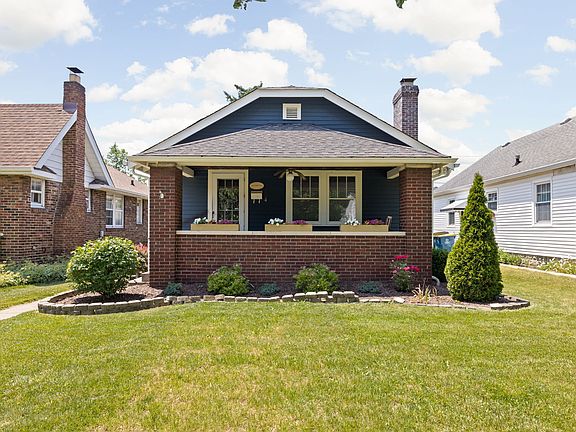 Irvington heart throb! Classic bungalow w/ large and inviting front porch. Step into these historic, well-preserved floors with beautiful wood trim throughout. Tons of light in classic dining and family room. Updated kitchen with newer, Stainless Steel appliances and perfectly quaint breakfast nook. Updated full bath with cast-iron tub, beautiful tile work and wooden built-ins. The finished basement offers additional living space and office. Very functional laundry and utility space as well. The large backyard with historic one car garage and brick patio is great for outdoor living. Don't miss out on a chance to live on this amazing street!