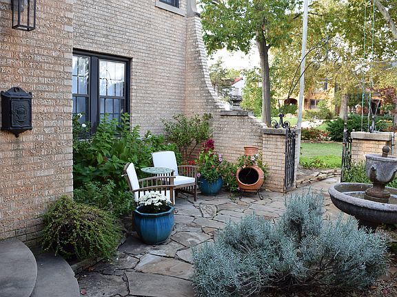 This Mediterranean influenced home in Historic Crown Heights is one of the few with a private Courtyard Entry with fountain. Located in the heart of the neighborhood this lovely home features a large living room and formal dining room with a view of the courtyard. The remodeled kitchen features a six burner 48" Thermador stainless stove, Sub Zero refrigerator, Bosch dishwasher, Scotsman ice maker, U-line wine fridge, custom cabinetry and granite counters with marble backsplash. The adjacent breakfast room has french doors leading to a backyard Oasis. The upstairs master bedroom features a full bath with natural stone and two closets. The remaining two bedrooms have access to the central hall bath. Third bed currently without closet but ample room for wardrobe or built-in. The first floor laundry room also doubles as mudroom off kitchen. Amazing backyard with pool, outdoor kitchen and patio with arbor. Garage in 98' features a full bath designed for pool area. Buyer to verify schools.