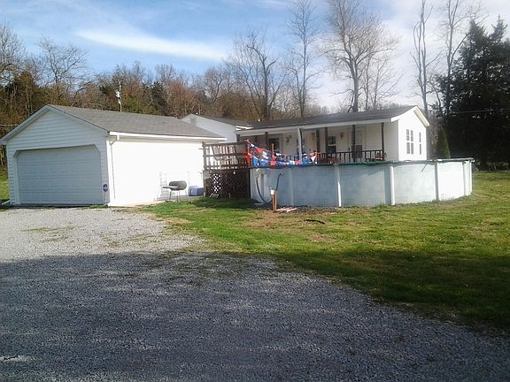 Cottage style getaway just minutes from Cedar Creek Lake and Lake Cumberland in the Heart of Bluegrass Country. This cottage is sitting on 2 acres with a creek flowing through property. Lots of wildlife, peace and serenity, only 3 miles from beautiful historical Stanford. Has one bedroom, large living room, galley kitchen with new cherry cabinets, dining room and bath with an open floor plan. 24" round swimming pool with deck right off the porch. Has a two car garage and an out building. Beautiful mature trees and landscaping.