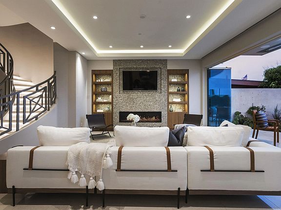 New co-ownership opportunity: Own 1/8 of this professionally managed, turnkey home. This contemporary cliffside stunner offers unparalleled elegance and endless views of the Pacific. Frameless glass doors seamlessly connect the interior to the limestone-tiled terrace. The open plan living space has a sleek fireplace flanked by built-ins. The gourmet kitchen is warmed by walnut cabinets and underlit quartzite countertops, and features Miele appliances. The adjoining dining room opens to the patio, fire pit and spectacular vistas. Dual primary suites offer more ocean views through glass-railed balconies, plus luxurious en suite bathrooms. The home includes an office, family room, a glass elevator and a garage with an automatic lift. The home comes fully furnished and professionally decorated.