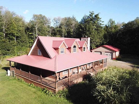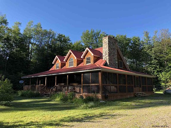 An abundance of wildlife awaits you on the way to your new home. This knotty pine Post and Beam, open concept home is a hidden treasure on 6 plus acres. A stunning 2 story stone, wood burning fireplace rises in the cathedral ceiling. Natural light pours through the many windows. Master bedroom downstairs with full bath and laundry, 2 bedrooms up with another updated full bath. At the foothills of the Adirondack where you can hike, canoe in the local lakes, hunt, cross-country ski or just take pictures of the wonders that surround you. Large 2 car garage and fenced in yard. Make this your next stop on your house hunting adventure.