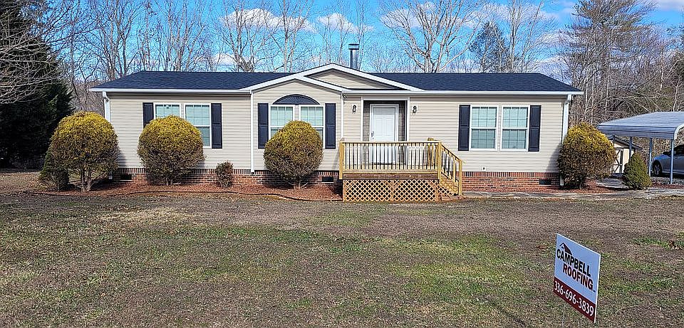 Single family home built in 2010 for sale by owner in Wilkesboro, NC 28697. Here you'll have a beautiful home in a nice, quiet neighborhood but also have the convenience of being within 10 minutes of Walmart, other shopping centers and restaurants on 421 Wilkesboro. Absolutely Like New! Extremely clean and ready to move into! A New Architectural Shingle roof was put on January 31st, 2024 that comes with a 40 year warranty! This home also has a new front porch that was built in September 2023. Single level living with beautiful, clean carpet floors in the living room and bedrooms; spotless vinyl in the kitchen, laundry area and bathrooms. Rock, gas fireplace with logs; also has a heat pump with central air. Tilt windows for easy cleaning and maintaining! Sheet Rock Walls! Gutters, septic, city water. Closets galore! Lots of cabinet space in kitchen! Open floor plan with large living room! Laundry room with mud door. Nice front yard and back with wooded area in back of property to complete the 1.38 acres. Refrigerator, smooth top stove, oven, microwave, dishwasher all convey! Beautiful landscaping and plants! Detached 2 car carport to shelter your vehicles and storage building for extra storage space and outside tools, lawn mowers etc. Property Type: Residential MUST SEE TO BELIEVE!