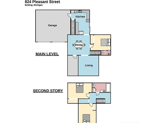 NEW, New, New!!! This Belding two-story may have vintage charm - but it has so much new and modern as well! New vinyl siding, new windows, new roof, new furnace, new kitchen (stainless steel appliances included!), new bathrooms, new paint, new flooring, new fixtures - too much to list it all! It also offers a LARGE kitchen with loads of storage, two-stall attached garage, sliders off of the kitchen to the side yard, main level laundry, main level master with half-bath en suite, and opportunity for a formal dining room or 4th bedroom! Upstairs is VERY spacious with two large bedrooms and a large modern bathroom with linen closet. All conveniently located a few blocks off M44 and an easy and beautiful commute to the Grand Rapids metro area.