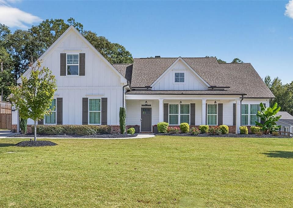 Welcome to this stunning farmhouse-style home, just three years old and full of upgrades! Offering four bedrooms, three and a half bathrooms, and a three-car garage, this home is built for comfort and style! The exterior showcases hardiplank siding with brick accents and custom outdoor lighting that illuminates the beauty of the home after sunset! Great open concept layout and laminate hardwood floors throughout the main living spaces. The gourmet kitchen features granite countertops, tile backsplash, wall oven, surface cooktop, and a large island with views of the living room. There are three bedrooms on the main level, including the primary bedroom. Also on the main level is a half bathroom for guests. The owner's suite features an oversized tiled shower with glass door and double vanities. Upstairs is an additional bedroom and full bathroom- perfect for guests or someone who wants a separate space! Enjoy privacy with the 1.29 acre property and fully fenced back yard which would be perfect for your dream pool! You cannot beat the location- convenient to schools, shopping, & Highway 316, this is the perfect blend of farmhouse charm and modern living. No HOA!