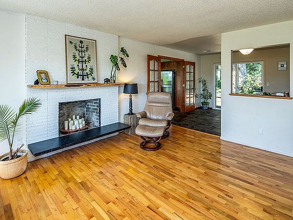 This absolutely charming mid-century home has plenty of space & a view! Open and bright kitchen/dining/living area looks toward the city & bay. Hardwood floors, french doors, & sliding door to park-like yard that provides total privacy. Stunning sunsets from the deck off kitchen. Separate oversized family room, large laundry room, and mechanics pit in the garage. Lower level bedroom has separate entrance & plumbing for potential kitchenette - lots of possibilities here! Located in the popular Puget Hill neighborhood. Don't miss this one!