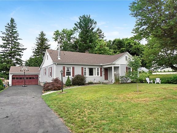 A lot to offer in this two bedroom Ranch Large Fire placed Living Room with wood floors, Dining Room also with hardwood. Eat-in Kitchen. Two bedrooms one with a half bath and access outside to the pool area. Semi-finished lower level with a full bathroom. Oil Boiler in excellent condition. New Roof. Two car detached garage. In-ground pool with new liner and two sheds. Close to everything (shopping/highways. Farm Hill School District. Come and see