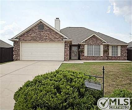 Just the cutest 3BR 2BA home on an over sized lot in Aubrey. NO HOA!! Inviting and open family room with fireplace looking into kitchen and nook. Large master bedroom with tray ceiling. Separate jetted tub and shower. Double vanities and 2 closets! Nice sized secondary bedrooms. Screened in patio out back over looking a huge backyard! Open patio in the front. Super cool neighbors and excellent schools. Will not last long at this price!!