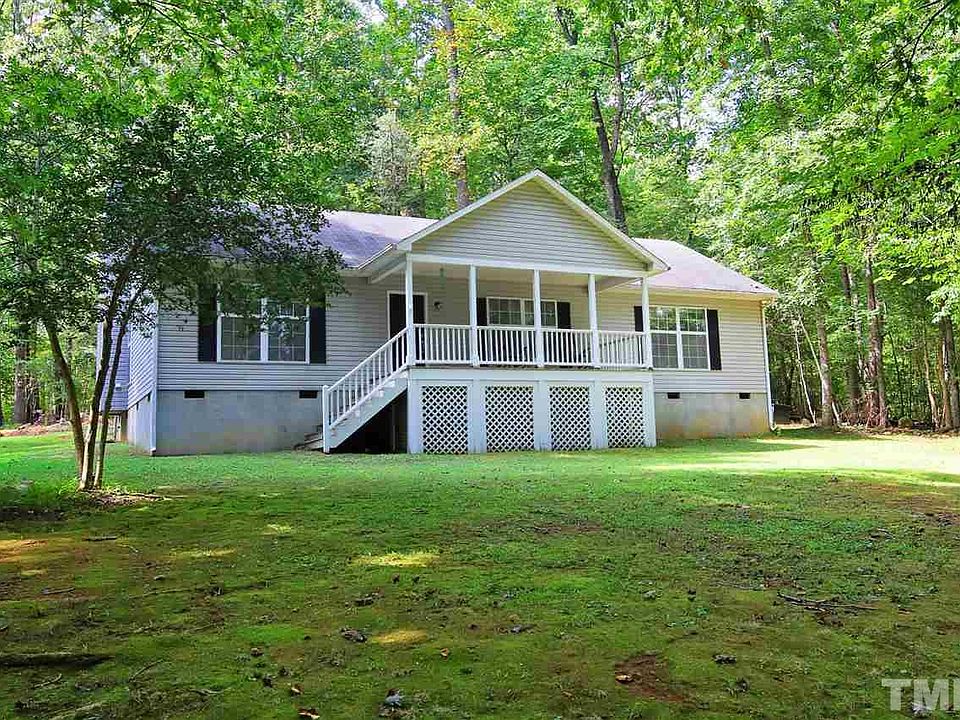 Charming North Chatham 3 bedroom 2 bath ranch home with an inviting covered front porch and oversized back deck ready to entertain. Functional split bedroom plan with elegant hardwoods nestled on a private wooded 3.1 acre lot. Large master owners suite. New paint throughout the home and new tile in the kitchen and master bathroom. Third bedroom has a fireplace and can be used as used as a den/office, currently used a bedroom. Home has a water softener.