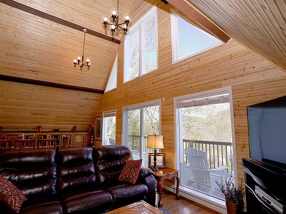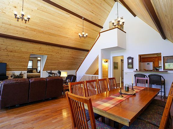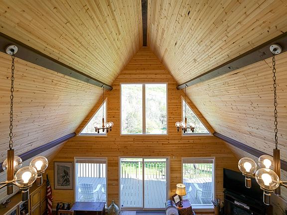 Enjoy the peaceful setting of trees and hills from one of the multiple balcony and patio spaces of this unique A-frame house! Inside, the great room and dining area will wow you with its stunning cedar-planked walls and ceilings and numerous windows. The walk-out basement includes a spacious foyer and new drop-down ceilings, lighting, and flooring. The recreation room and home office can serve as 5th and 6th bedrooms. Detached from the main house is a 2BR mother-in-law suite (with kitchen) above a two-car garage, with AC units on new windows. Customize the outbuilding's second level (plumbed in, luxury vinyl plank flooring, window AC units, countertop and cabinets) to your liking. Appliances, AC unit, front doors, garage doors and openers, and both water heaters are under 3 years old. Less than 2 miles to I75 and 5 miles to charming downtown Berea! (Owner is an agent.)