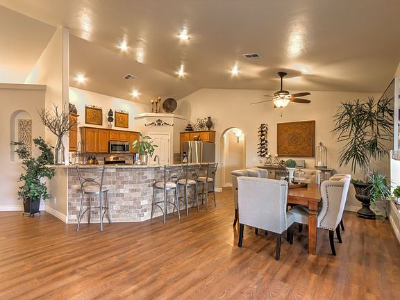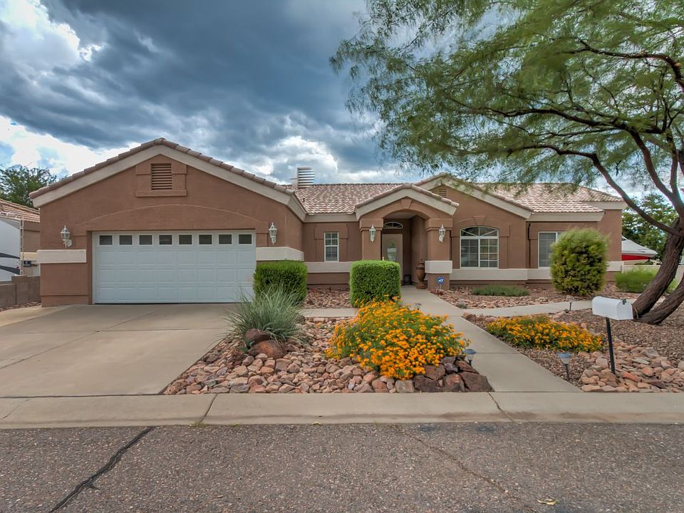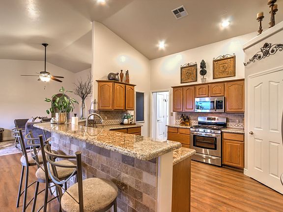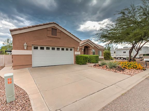 This stunning 5 bedroom, 3 bath, 2200+ sqft, single level home is perfectly located in Globe. The spacious great room floor plan, with vaulted ceilings is ideal for entertaining! The kitchen features tons of upgraded cabinetry, stainless steel appliances, gas cooktop, granite countertops, a pantry and beautiful tile backsplash. The huge master suite is complete with double sinks, separate shower and garden soaking tub, a GIANT walk-in closet and sliding doors to the back patio. The outdoor living here is fabulous!! Relax on the deck and gaze out at the sweeping mountain views or dine al fresco from beneath the gazebo. Enjoy the lush landscaping, including 3 fruit trees, a completely fenced yard and views for days!