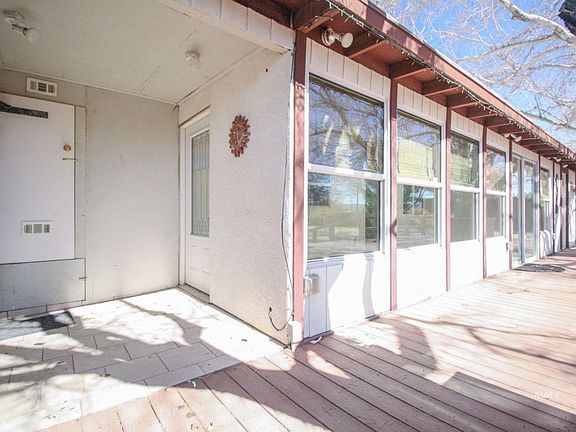 UNIQUE 3 bed/1 & 3/4 bath home, .70 acre fully fenced w/ several storage sheds, outbuildings, 4KW solar owned,power windmill, water filtration's system, endless security cameras & system, additional living space heating & cooling permitted as an enclosed patio, upgrades by Cordell w/permits, sea container 20' w/electrical, three sheds. Large shop approx 34'x20'. The garage was converted & can be used as a workshop. The living/dining & kitchen area all open concept. Kitchen has large breakfast bar & brand new dishwasher. In the master suite a large walk in closet was added & bathroom was expanded. The yard is a great space for entertaining w/ it's built in bbq pit. Private courtyard at entry & a secluded space on south side of the home where you will enjoy the lush lawn & trees. North side has a very large trek deck & perfect for entertaining with a ton of storage space & plenty of parking for your guest, RV, trailers, toys, pets etc. Electrical outlets everywhere.. Entertainment would be fantastic on this secluded property corner of Bowman and Sunset. No neighbors to the N or E. Inspection report & repairs are done. This home has it all and a must see!
